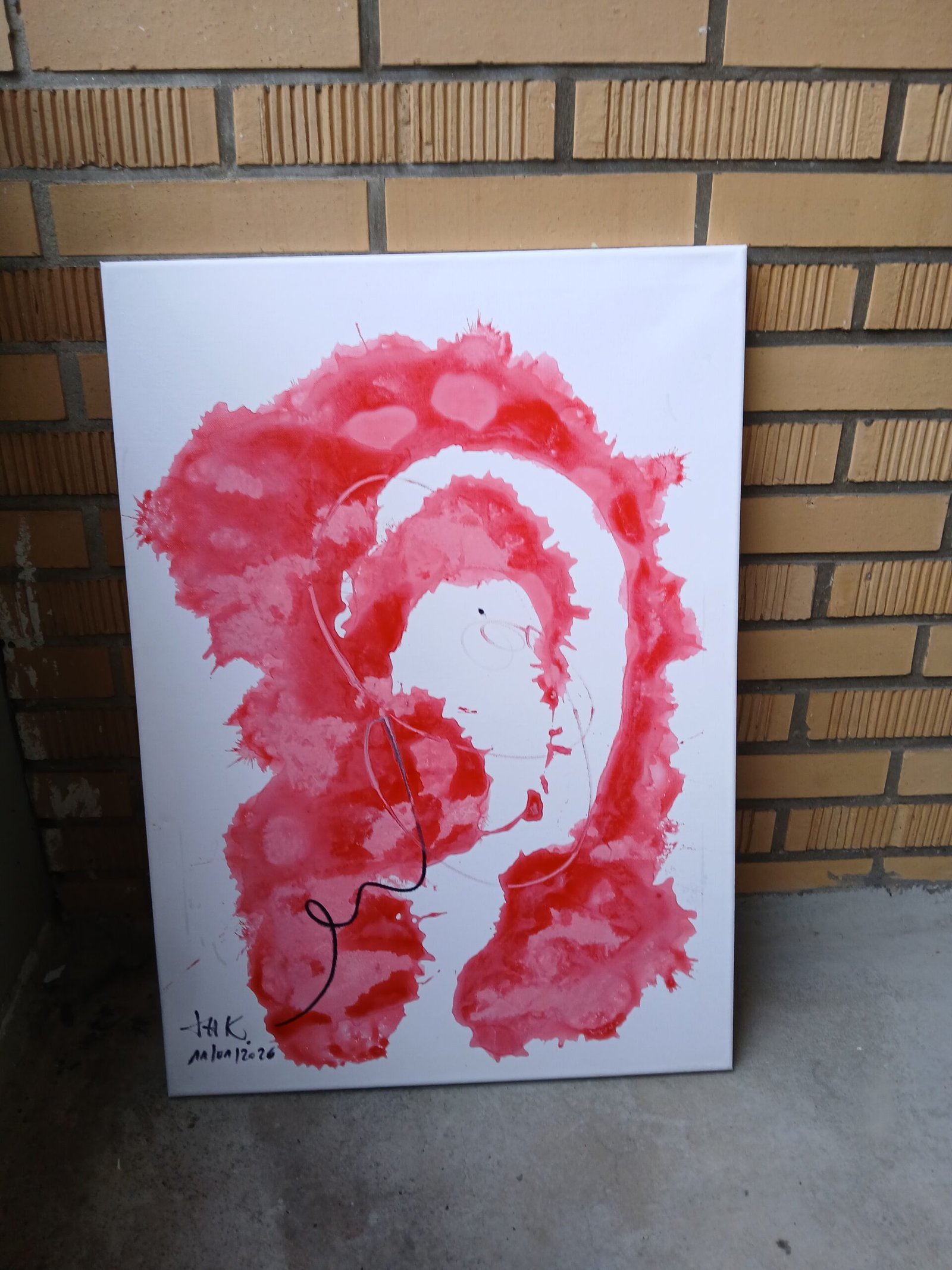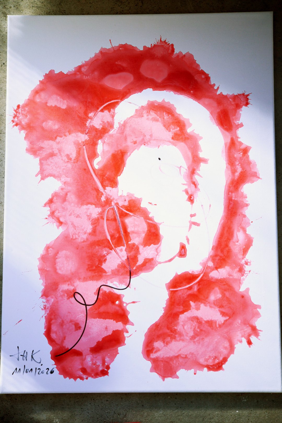 Gemalt auf Leinwand mit Acrylfarbe und Filzstift.