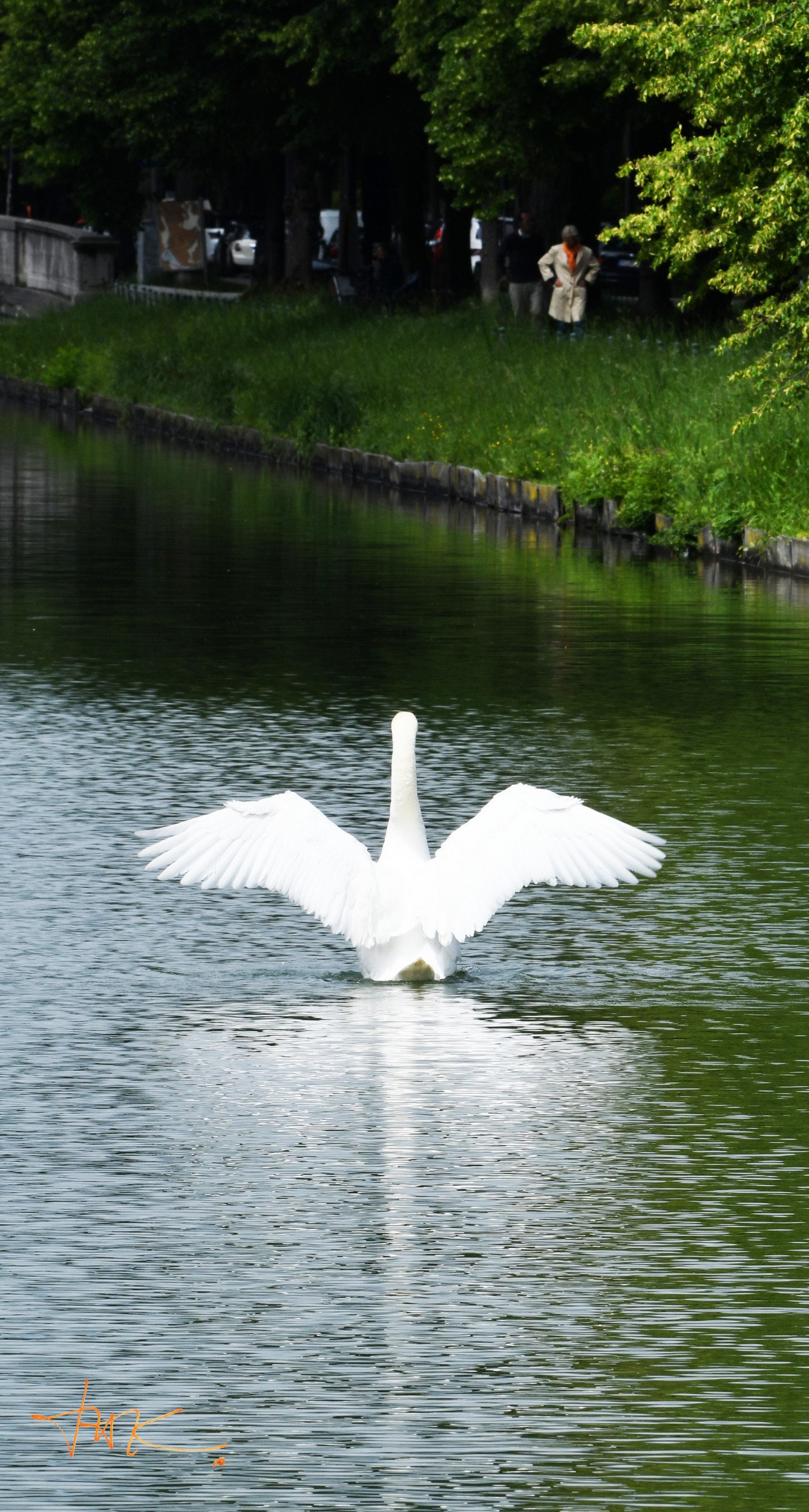 München – Schwan betrachtet von Frau | Munich – Swan watched by Woman – Thomas Krieber – Auflage 58 Stück | Print run 58 Items